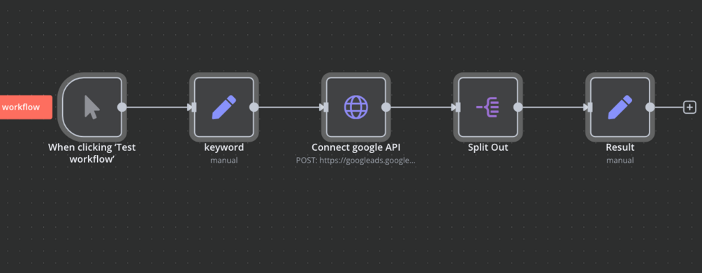 This system allows you to automate Google Keyword Planner data extraction using n8n.